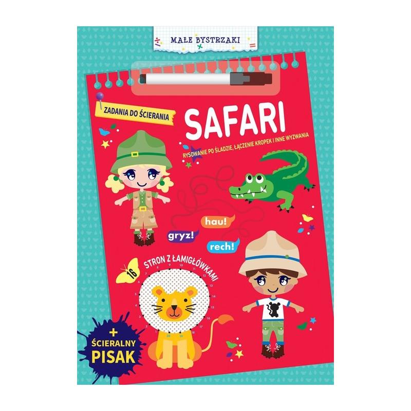„Małe bystrzaki“ to seria niezwykłych książeczek, które pomogą Twojemu dziecku w rozwoju! Rysując po śladzie, łącząc kropki, szukając różnic, będzie ono ćwiczyć percepcję wzrokową, małą motorykę i koordynację oko–ręka. Dzięki dołączonemu do książki ścieralnemu pisakowi zadania można wykonywać wielokrotnie. Świetna zabawa gwarantowana!