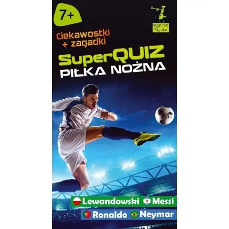 SuperQuiz Piłka nożna to doskonała zabawa, która pozwoli dziecku rozwijać zainteresowania, zaskoczyć innych swoją wiedzą, a przy okazji trenuje pamięć, koncentrację i czytanie ze zrozumieniem.