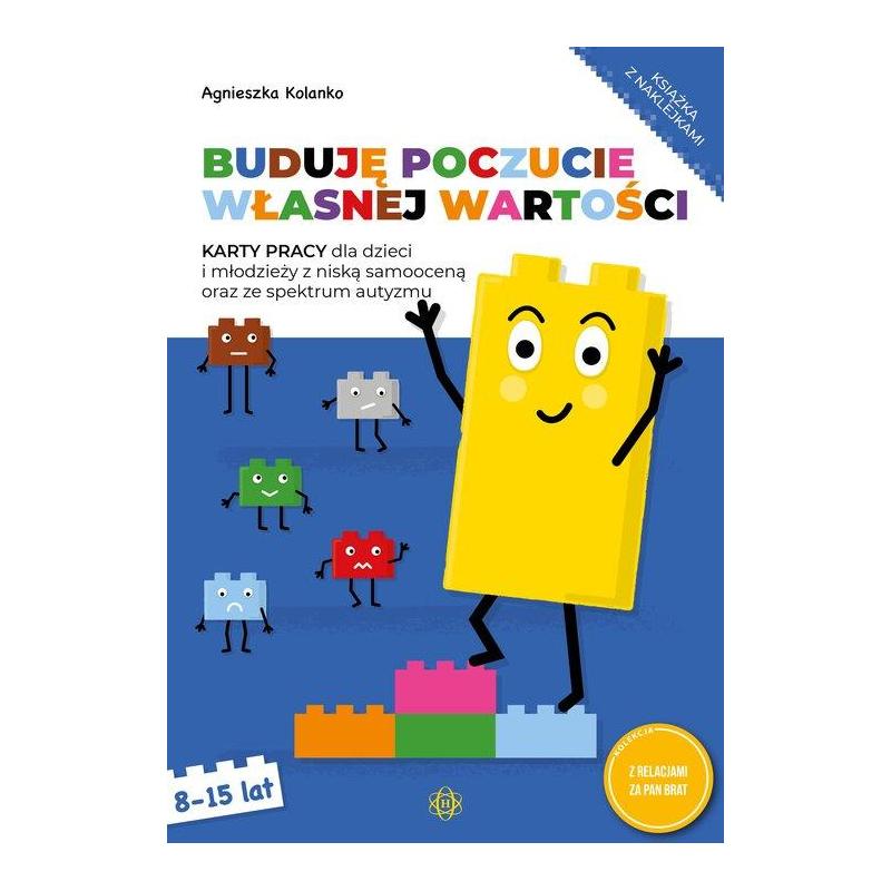 Karty pracy, przeznaczone dla uczniów w wieku 8–15 lat, przygotowują do zmierzenia się z trudnym zagadnieniem poczucia własnej wartości. Książka została opracowana z myślą o terapii dzieci i młodzieży ze spektrum autyzmu oraz wszystkich tych, którzy czują się bezwartościowi i nieakceptowani. Materiały pozwalają uczniom znaleźć odpowiedzi na pytania: - Jak akceptować samego siebie? - Jak przeciwdziałać niskiej samoocenie? - Jak radzić sobie z niepowodzeniami? - Jakie zachowania innych osób mogą powodować, że czujemy się niedowartościowani? - Jak może wyglądać osoba z wysoką/niską samooceną? Podejmowane tematy dotyczą spraw bliskich młodym ludziom, którzy borykają się z brakiem wiary we własne umiejętności. Kolejne karty pracy poświęcone zostały takim zagadnieniom, jak: - wysoka i niska samoocena - talenty i słabości - zasady pozytywnego myślenia - sukcesy i porażki - optymizm i pesymizm - narcyzm. Dodatkowo publikacja zawiera: - dziennik samooceny – pomoc do wizualnego przedstawienia procesu budowania poczucia własnej wartości - ponad 500 naklejek do wypełnienia dziennika. Karty mogą być wykorzystane przez pedagogów, nauczycieli oraz terapeutów podczas zajęć indywidualnych, a także grupowych. ublikacja wchodzi w skład cyklu, który tworzą również tytuły Poznaję emocje i Znajdę przyjaciela. Wszystkie trzy książki łączy motyw przewodni klocków, do którego odwołuje się oryginalne i atrakcyjne opracowanie graficzne tych kart pracy.