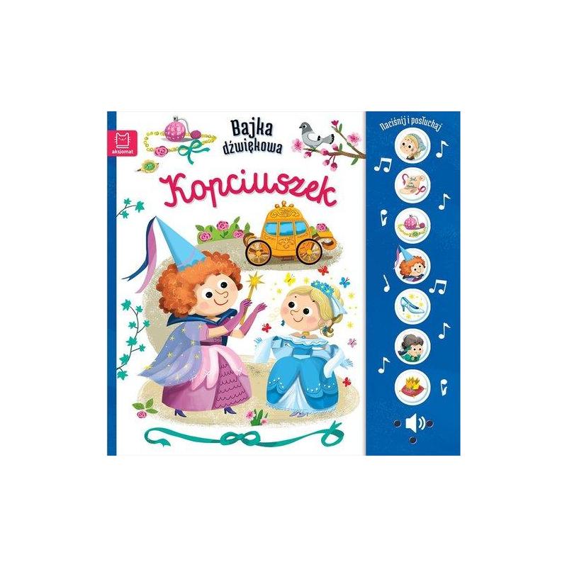 Znana bajka o Kopciuszku w nowej odsłonie, z modułem dźwiękowym – do czytania, oglądania i słuchania! Bajka została podzielona na siedem części mieszczących się na siedmiu rozkładówkach. Krótkie teksty doskonale nadają się do pierwszych prób w czytaniu, a zabawne i staranne ilustracje obrazują i dopowiadają treść bajki. Tekst bajki czytany jest powoli i wyraźnie przez zawodowego aktora o spokojnym i miłym w odbiorze głosie, a nagranie nie jest ani za ciche, ani za głośne – w sam raz dla małego dziecka. Maluchy mogą więc oglądać i słuchać – aby włączyć nagrany tekst, należy nacisnąć kółeczko z obrazkiem. Chcesz wyłączyć? Naciśnij kółeczko jeszcze raz. Twarda oprawa i kartonowe karty sprawiają, że książka jest trwała i bezpieczna w użyciu, a format odpowiedni dla małego dziecka. Ta książeczka to strzał w dziesiątkę! Oglądaj, czytaj lub słuchaj i daj się przenieść do krainy bajek!