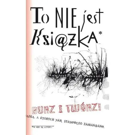 Koniec z zakazami: „Nie plam! Nie zaginaj rogów! Nie rzucaj w kąt!”. Teraz możesz mazać, bazgrać, kleić i robić dużo bardziej szalone rzeczy, a powstanie twoje własne dadaistyczne dzieło sztuki. Teraz ty jesteś autorem i artystą – burz i twórz, zgodnie z nastrojem chwili, wykorzystując cały swój twórczy potencjał. TO NIE JEST KSIĄŻKA to zachęta dla (jeszcze) nieczytających i dla tych, którzy od zadrukowanego papieru wolą świecący ekran. To coś więcej niż zszyte kartki i okładka – to absolutna nowość dla dzieci, młodzieży i tych, którzy zawsze swą ulubioną książkę mieli ochotę potraktować indywidualnie. Tu każda strona woła: „Napisz mnie, narysuj, stwórz!”. Przełam opór, oswój papierowy obiekt. Przekonaj się: książka może być twoim najlepszym przyjacielem i najbliższym powiernikiem!