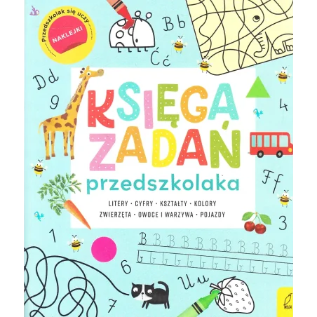 Zapraszamy do przygody z "Księgą Zabaw Przedszkolaka"! Ta pełna kolorowych łamigłówek książka z 6 stronami naklejek sprawi, że żadnej chwili nie będziecie się nudzić! Odkryjcie świat zwierząt, owoców, warzyw, pojazdów, kształtów i kolorów razem z nami. Ćwiczcie litery i cyferki,