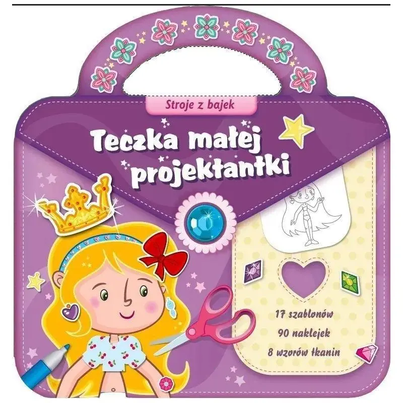ARTYSTYCZNY ZESTAW dla małych projektantek mody. W poręcznej książeczce w kształcie teczuszki z rączką, którą można zabrać ze sobą w dowolne miejsce, zamknięte jest wszystko, co potrzebne do przygotowywania wspaniałych kreacji: - szablony z częściami garderoby, które posłużą jako wzory (wykroje) do odrysowywania zarówno na kartach z modelkami, jak i papierach udających tkaniny; - arkusze kolorowych, ozdobnych papierów udających tkaniny - do samodzielnego przygotowania części garderoby modelek; - arkusze z kolorowymi naklejkami, na których małe projektantki znajdą buty oraz różne dodatki zarówno do strojów, jak i modelek. Te wyjątkowe ubieranki to atrakcyjna propozycja dla młodych stylistek, które lubią twórcze zabawy z naklejkami w kształcie części garderoby i różnorodnych akcesoriów. Korzystając z książeczek, dziewczynki rozwiną swoje zdolności manualne i nauczą się dobierać stroje odpowiednie do okazji. Kolorowe, zróżnicowane naklejki, które zachęcają do eksperymentowania ze stylami i puszczenia wodzów wyobraźni, sprawią, że zabawa będzie trwała bardzo długo!
