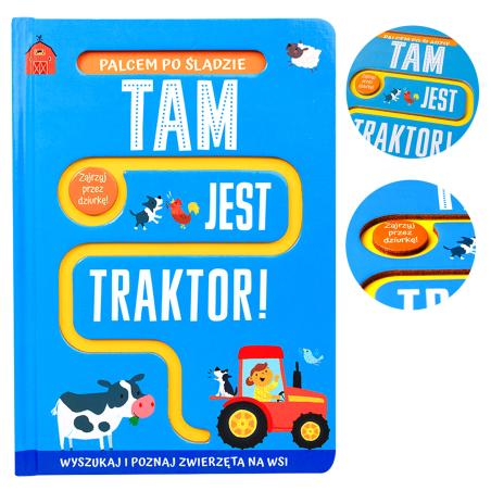 Maluch będzie świetnie się bawił i poznawał pracowite życie na wsi, podążając śladem traktora. Na każdej stronie książki dziecko wyczuje pod paluszkami wyżłobioną ścieżkę, które poprowadzą je przez kolejne, pełne szczegółów scenki. W każdej z nich spotka rżące, kwiczące i beczące zwierzęta gospodarskie! Odpowie na pytania, znajdzie też rzeczy do odkrycia i policzenia. Mały czytelnik będzie dotykał wykrojonych kształtów, a przez wycięte w kartkach dziurki zajrzy na kolejne strony i dowie się, dokąd zmierza traktor! Książka dzięki elementom sensorycznym doskonale rozwija motorykę małą, a także zmysły dotyku, wzroku i koordynację ruchową.