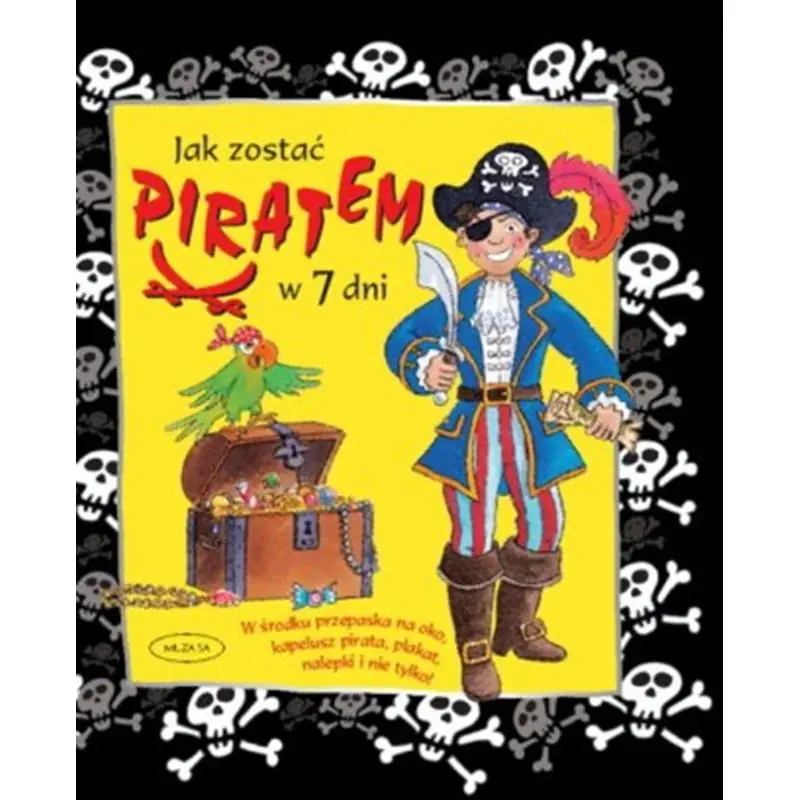 · niezbędny poradnik dla chłopców w wieku 5-10 lat, którzy chcą zostać nieustraszonymi piratami · tygodniowy plan pomoże poznać smak życia piratów · specjalna tekturowa kieszonka na trzeciej stronie okładki zawiera: kapelusz piracki, przepaskę na oko, piracki plakat do kolorowania, naklejki, żetony, kolczyk Znakomita podpowiedź dla