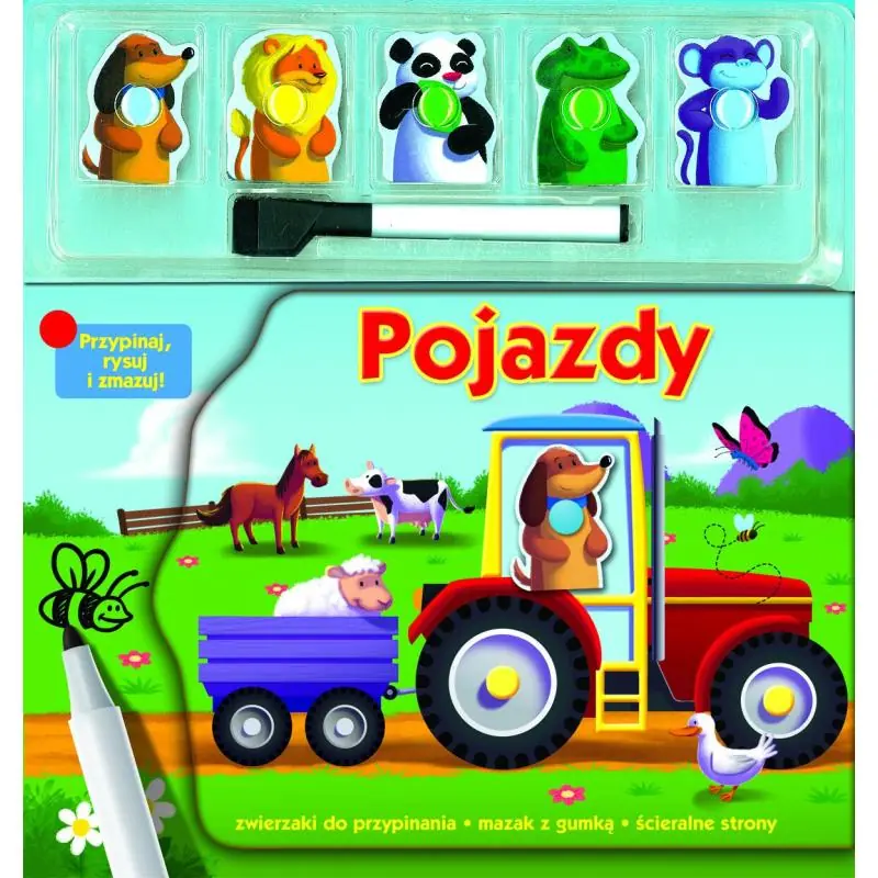W tej książeczce to dziecko decyduje, które zwierzątko przeżywa przygodę! Przy okazji uczy się odróżniać pojazdy, liczyć i wzbogaca swoje słownictwo. Mazak z gumką i ścieralne strony umożliwiają wielokrotne rysowanie, pisanie i ćwiczenie nowych umiejętności.