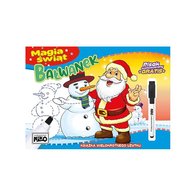 Seria MAGIA ŚWIĄT to książki wielokrotnego użytku do rysowania po śladzie. Świąteczne ilustracje zachęcają dzieci do ćwiczeń grafomotorycznych i przygotowują je do nauki pisania. Dzięki rysowaniu po śladzie dziecko usprawnia precyzję ruchów ręki piszącej, koordynację wzrokowo-ruchową oraz wytrzymałość mięśni. Urozmaicone i ciekawe rysunki zamieniają ćwiczenia w zabawę, a laminowane strony i pisak suchościeralny pozwalają na wielokrotne powtarzanie zadań aż do uzyskania zadowalającego efektu.