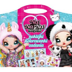 Bajeczna teczka, którą zabierzesz ze sobą wszędzie. Tekturowa teczka z rączką, w której kryje się wiele niespodzianek. W środku znajdziesz 2 karty pełne naklejek, 12 obrazków do pokolorowania oraz – co najważniejsze – książkę z zadaniami osadzonymi w świecie laleczek Na! Na! Na! Surprise.