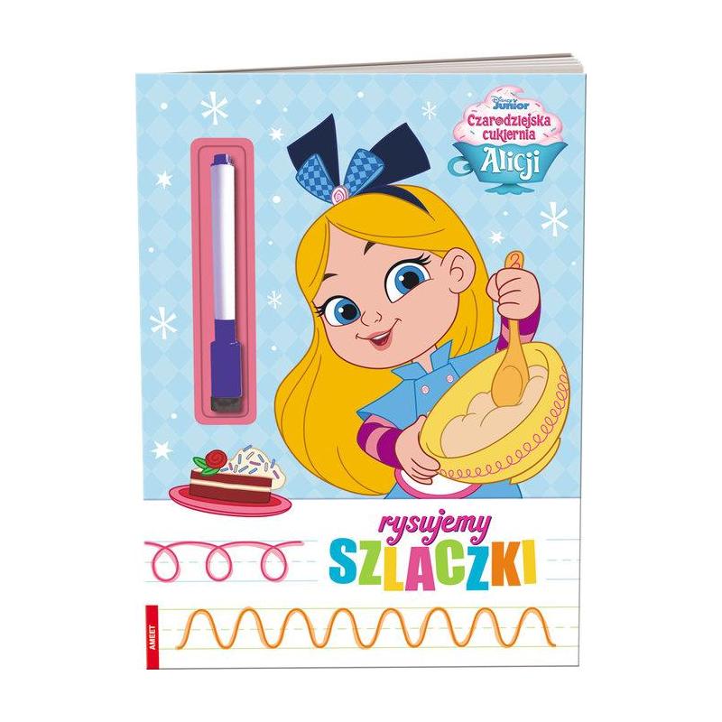 Alicja zaprasza do krainy szlaczków! W towarzystwie swoich ulubionych bohaterów z animacji najmłodsi będą ćwiczyć kreślenie szlaczków i rysowanie różnorodnych kształtów. Będzie to dla nich nie tylko wspaniała zabawa, ale też doskonały trening umiejętności manualnych przygotowujący do nauki pisania liter i cyfr. Dzięki specjalnym stronom i ścieralnemu mazakowi w każdej chwili dzieci mogą zacząć przygodę ze szlaczkami od nowa. Dodatkową atrakcją są wesołe rymowanki na temat ulubionych postaci.