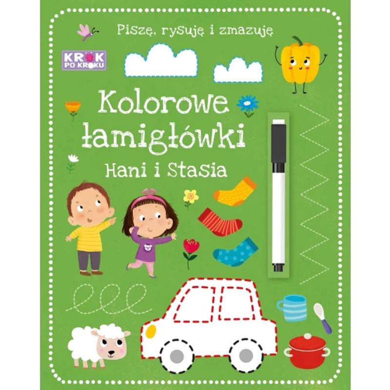 Seria Krok po kroku pomaga małym czytelnikom stopniowo odkrywać otaczający ich świat. Tym razem mogą uczyć się nowych rzeczy i zdobywać nowe umiejętności dzięki wyjątkowym zeszytom zawierającym ciekawe łamigłówki i zadania. Do każdego jest dołączony specjalny flamaster zmywalny, dzięki czemu zabawa z książką nie ma końca.