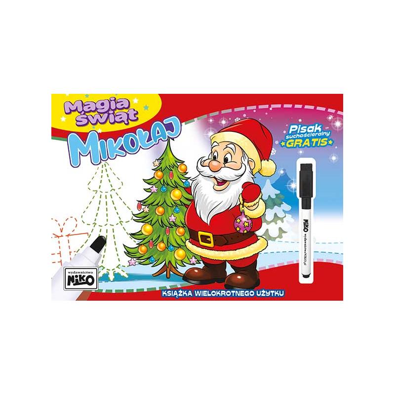 Seria MAGIA ŚWIĄT to książki wielokrotnego użytku do rysowania po śladzie. Świąteczne ilustracje zachęcają dzieci do ćwiczeń grafomotorycznych i przygotowują je do nauki pisania. Dzięki rysowaniu po śladzie dziecko usprawnia precyzję ruchów ręki piszącej, koordynację wzrokowo-ruchową oraz wytrzymałość mięśni. Urozmaicone i ciekawe rysunki zamieniają ćwiczenia w zabawę, a laminowane strony i pisak suchościeralny pozwalają na wielokrotne powtarzanie zadań aż do uzyskania zadowalającego efektu.