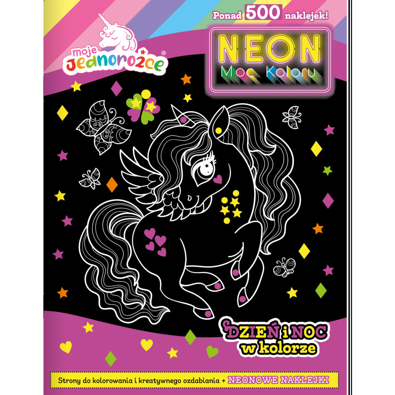 Moje Jednorożce. Neon moc koloru. Książka z obrazkami i z ponad 500 neonowymi naklejkami do tworzenia wyjątkowych, kreatywnych prac w środku strony do kolorowania i kreatywnego ozdabiania. Każda strona to nowa przygoda z magicznymi jednorozcami! Twórz wyjątkowe i kreatywne prace! Koloruj bohaterów i wyklejaj strony neonowymi naklejkami. Efekt końcowy cię zaskoczy!