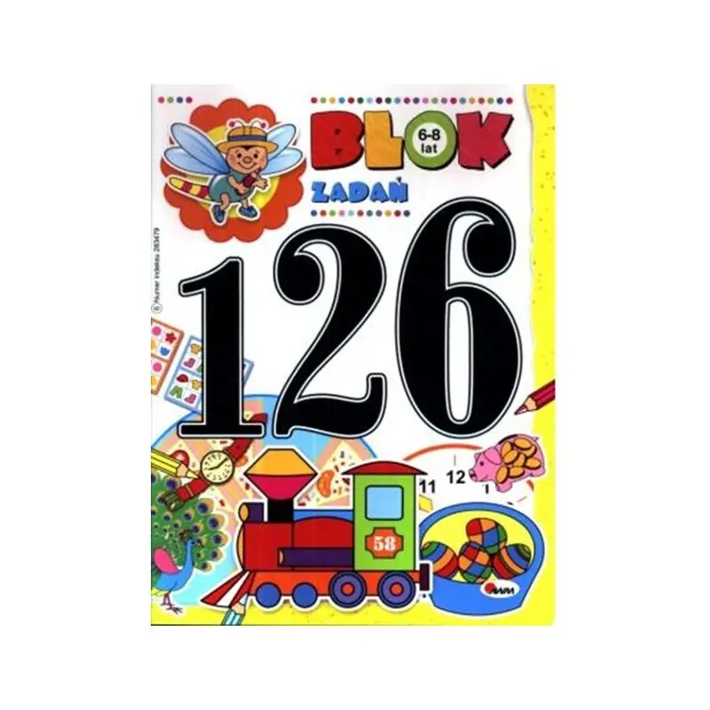 80 stron wspaniałej zabawy! Labirynty, rebusy, szukanie podobieństw i różnic, rysowanie według wzoru, pisanie, liczenie oraz mnóstwo innych, ciekawych zabaw i zagadek, a dodatkowo wiele ilustracji do samodzielnego kolorowania! · Rozwijanie umiejętności myślenia i kojarzenia, · ćwiczenie spostrzegawczości, · doskonała pomoc w nauce liczenia i pisania.