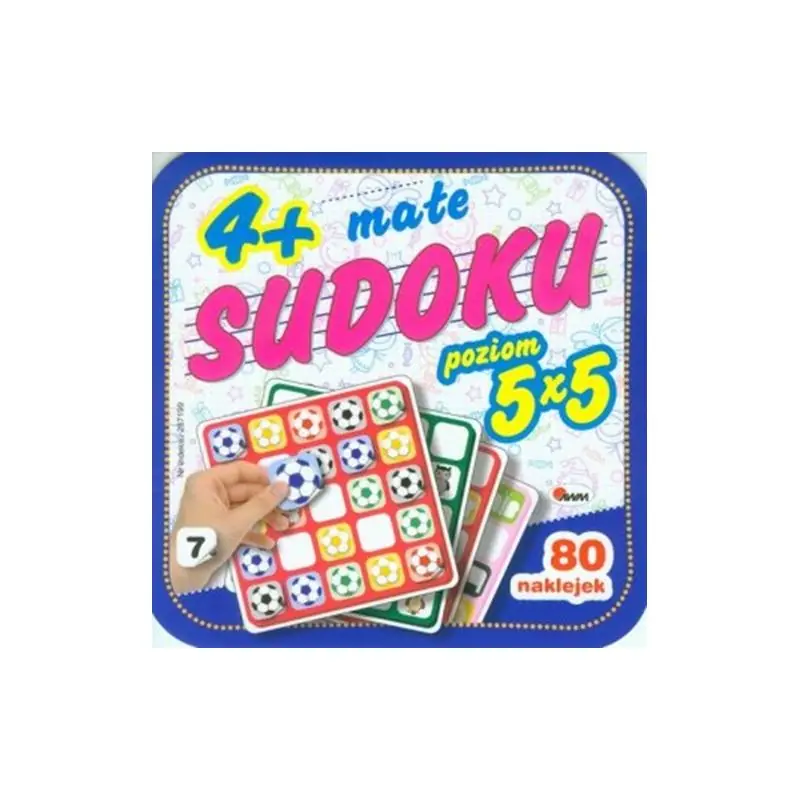 Seria małe SUKOKU to 10 łamigłówek o różnym poziomie trudności. Poziom 4 x 4 (4 elementy) dla dzieci od 3 lat. Poziom 5 x 5 (5 elementów) dla dzieci od 4 lat. Poziom 6 x 6 (6 elementów) dla dzieci od 5 lat. Rozwijaj umiejętności logicznego myślenia oraz spostrzegawczość! 10 schematów sudoku do uzupełnienia, 80 naklejek oraz zabawa bez końca!