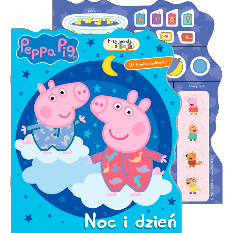 Kolorowa książeczka w atrakcyjnym i przyciągającym uwagę formacie. W roli głównej uwielbiana przez dzieci Świnka Peppa. Razem ze swoją rodziną i przyjaciółmi zachęca małych czytelników do wspólnej zabawy, rozwiązywania łamigłówek, labiryntów, zagadek i kolorowania. W środku także dwa arkusze naklejek! Z Peppą trudno się nudzić. Czy to spotkanie z przyjaciółmi, czy wieczorne przygotowani a do snu- zawsze jest pora na dobrą zabawę! Przyklejaj naklejki, rozwiązuj łamigłówki i wesoło spędzaj czas z ulubionymi bohaterami!