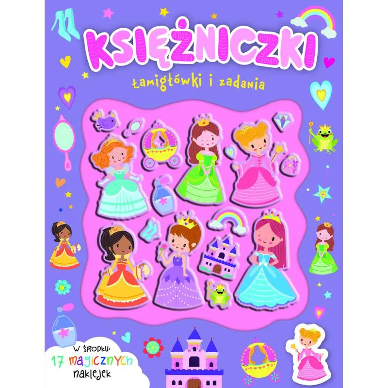 Urocze księżniczki zapraszają do fantastycznej zabawy! Pokonaj z nimi labirynty, znajdź różnice, rozwiąż łamigłówki i równania, zgaduj, rysuj i koloruj. Baw się wypukłymi naklejkami i użyj ich do ozdabiania stron!