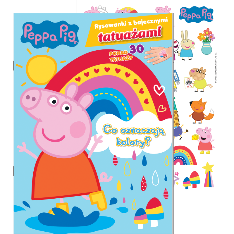 W świecie Peppy wszystko nabiera barw! Ta książka to doskonałe połączenie kolorowanek, prostych łamigłówek i bajecznych tatuaży, które dzieci mogą nosić z dumą. Świnka Peppa i jej przyjaciele zabierają najmłodszych na pełną kolorów