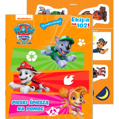 W książce Psi Patrol. Ekipa na 102! mali czytelnicy mogą cieszyć się zagadkami, łamigłówkami oraz kolorowankami ze swoimi ulubionymi bohaterami. Poprzez rozwiązywanie różnorodnych zadań dziecko może włączyć się do bohaterskiej misji dzielnych piesków i Rydera.