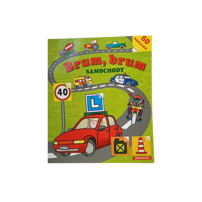 To książeczka dla każdego dziecka, które ciekawi świat samochodów i wielkich maszyn. A w niej: 60 kolorowych naklejek, duże ilustracje do kolorowania, łatwe do zapamiętania, rymowane wierszyki. Co to jest lewarek? Do czego służy pachołek? Czym różni się motocykl od skutera? Dzięki świetnej zabawie w wyszukiwanie i nalepianie kolorowych naklejek każdy mały miłośnik motoryzacji pozna odpowiedzi na te i wiele innych pytań.