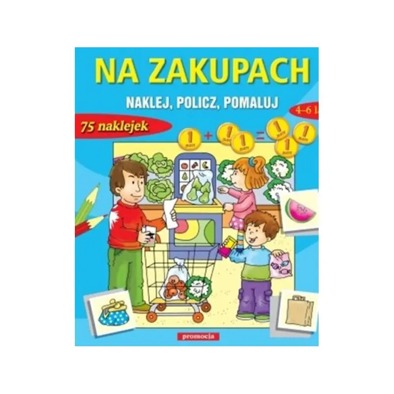 Na zakupach - Świetna zabawa i prawdziwa matematyka dla Twojego kilkulatka!Książka zawiera ciekawe propozycje edukacyjne, które służą doskonaleniu:- umiejętności liczenia- spostrzegawczości- sprawności manualnej- logicznego myśleniaDziecko uczy się rozpoznawać przedmioty, wzbogaca słownictwo, rozwiązuje proste zadania matematyczne, a przy tym dobrze się bawi, wyszukując i nalepiając naklejki oraz kolorując obrazki.