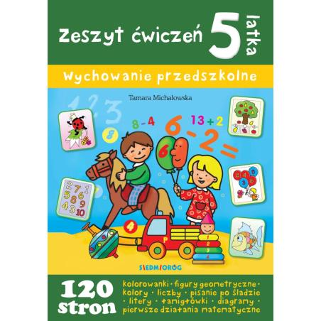 Ten wartościowy, pięknie ilustrowany zeszyt 5-latka został opracowany zgodnie z podstawą programową do pracy dydaktycznej w przedszkolu. Książka zawiera sto dwadzieścia ćwiczeń edukacyjnych przygotowujących dziecko do rozpoczęcia nauki w zerówce. Wielkim atutem książki jest różnorodność zadań, zarówno pod względem stopnia trudności (zadania ułożone są od najprostszych do najtrudniejszych), jak i rozwijanych umiejętności, dzięki czemu dziecko udoskonali krok po kroku sprawność manualną, umiejętność rozpoznawania kolorów i kształtów, zdolność logicznego myślenia, spostrzegawczość, a przede wszystkim zacznie przygotowywać się do nauki pisania i liczenia.