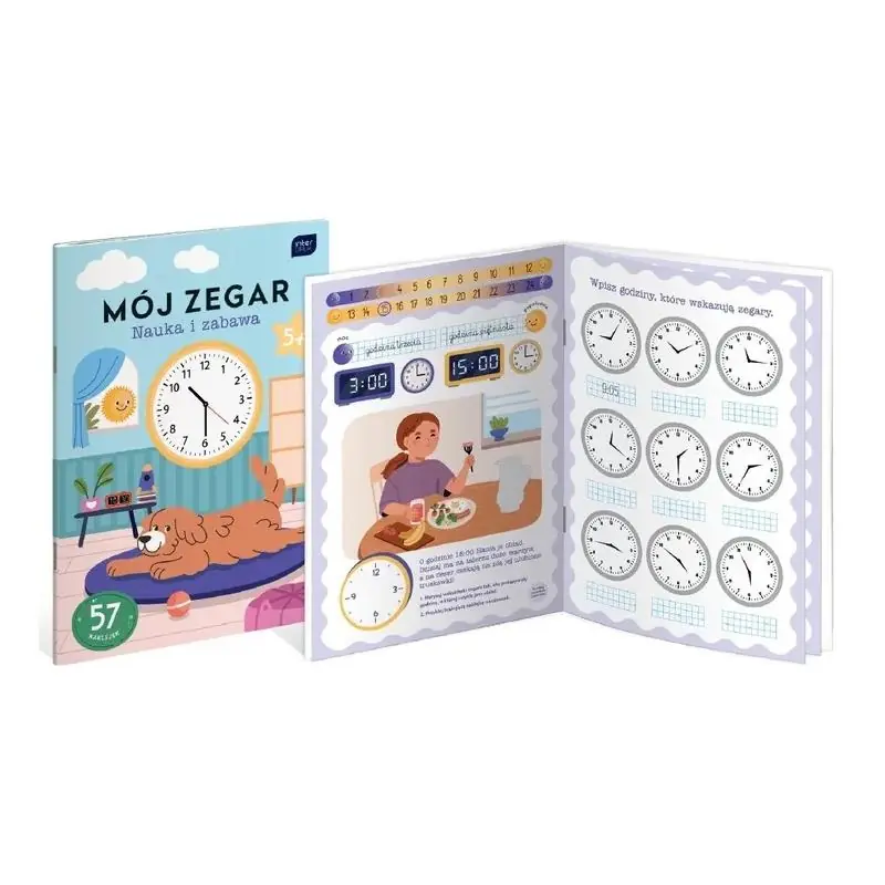 Ćwiczenia w książeczce pomagają w nauce posługiwania się zegarem. Są wspaniałą propozycją dla tych, którzy mają z tym trudności. Książeczka polecana nauczycielom jako pomoc dydaktyczna oraz dzieciom do nauki i zabawy w domu.