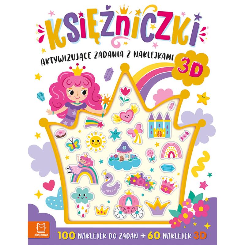 Księżniczki zapraszają do świata zadań z naklejkami. Ciekawe i starannie opracowane łamigłówki z naklejkami rozwijają spostrzegawczość, w naturalny sposób zachęcają do nauki liczenia, uczą skupienia i koncentracji uwagi. Dzieci bardzo lubią takie aktywizujące zadania. Znajdą tu klasyczne labirynty, wyszukiwanie różnic, łączenie punktów, ukryte rysunki, logiczne sekwencje i obrazkowe sudoku oraz ćwiczenia manualne w rysowaniu po śladzie. Dodatkowe naklejki 3D można wykorzystać w książce lub poza nią.