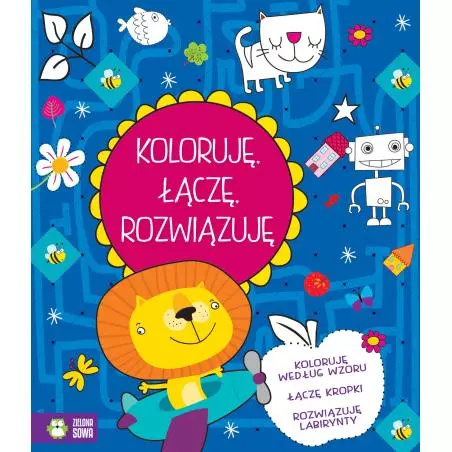 Wystarczy postępować zgodnie z poleceniem, a w kilka chwil maluch stworzy przepiękne kolorowe mozaiki, przeróżne zwierzęta, postaci, pojazdy i stwory albo zagłębi się w tajemnicze labirynty. Rysowanie i kolorowanie ćwiczy rączkę dziecka oraz przygotowuje ją do nauki pisania. Wesołe ilustracje zagwarantują świetną zabawę nie tylko dzieciom – na pewno zachęcą do sięgnięcia po kredki również niejednego dorosłego. Specjalna edycja książki „Koloruję, łączę, rozwiązuję” to 3 w 1 – czyli zbiór trzech części wyjątkowej serii do kolorowania! Znajdziecie tutaj części: „Łączę kropki”, „Koloruję według wzoru”, „Rozwiązuję labirynty”.