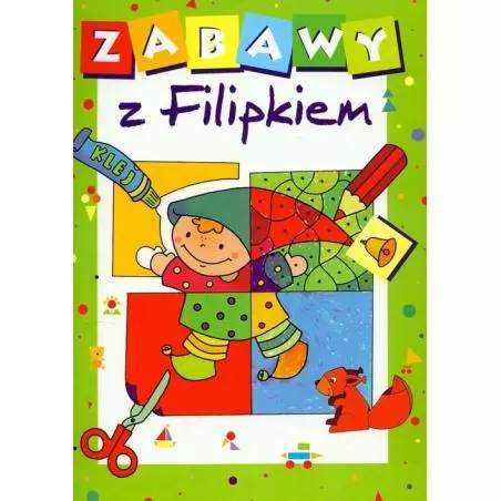 Zabawy z Filipkiem” to atrakcyjna, wyjątkowa książka edukacyjna przeznaczona dla przedszkolaków. Zebrane w niej zadania dają dziecku możliwość wykorzystania wielu różnorodnych technik plastycznych - wykonania prac przestrzennych z tektury, kopiowania na kalce, korzystania z papieru kolorowego i samoprzylepnego. Zachęcają dziecko do wykorzystania takich narzędzi pracy jak klej, nożyczki, kredki.