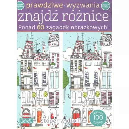 Ta książka pęka w szwach od fantastycznych zagadek obrazkowych. Wszystkie różnice trzeba znaleźć w określonym czasie, podanym w minutach i sekundach u góry planszy.