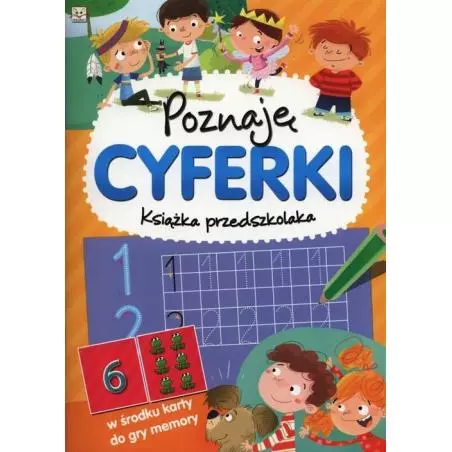 "Poznaję cyferki. Książka przedszkolaka" Zapraszamy wszystkie dzieci do pierwszych zabaw z liczbami. "Poznaję cyferki. Książka przedszkolaka" zawiera staranne zilustrowane i ciekawe zadania, które sprawiają, że poznawanie liczb zamienia się w prawdziwą przyjemność. Dzieci znajdą tu wyraźne wzory do pisania cyfr i liczb oraz proste działania matematyczne. Dodatkową atrakcją są tekturowe karty z matematyczną grą memory. Jak grać w matematyczne memory? Wytnij karty do gry i dokładnie obejrzyj. Poukładaj je w pary składające się z liczby i obrazka z odpowiednią liczbą elementów. Zaproś do gry jedną lub więcej osób. Potasuj karty i rozłóż na stole, tak by nie było wiadomo, co przedstawiają. Każdy gracz odwraca dwie karty. Jeśli udaje mu się znaleźć parę, zabiera ją. Jeśli nie, odwraca karty i zostawia w tym samym miejscu. Wygrywa ta osoba, która zbierze najwięcej par.