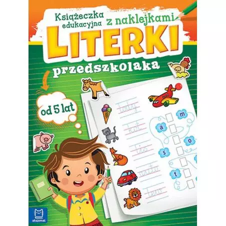 "Literki przedszkolaka od 5 lat. Książeczka edukacyjna z naklejkami" to edukacyjna książeczka z naklejkami dla dzieci rozpoczynających naukę pisania. Baw się i ucz razem z nami!