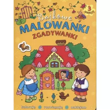 Kolorujemy i rozwiązujemy łamigłówki wraz z bohaterami popularnych bajek. W kolorowankach spotkamy: Piotrusia Pana, Czerwonego Kapturka, Kota w Butach. W części obejmującej zadania: rebusy, porównywanie obrazków, łatwe działania matematyczne. Świetna zabawa i znakomity sposób na naukę! Dołączone naklejki.