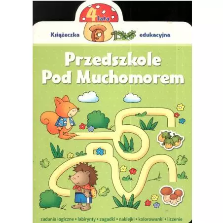 Seria „Przedszkole Pod Muchomorem" została przygotowana w oparciu o aktualny program wychowania przedszkolnego. Bohaterami serii są cztery zwierzątka: Żabka, Jeżyk, Wiewiórka i Borsuk - przyjaciele z leśnego przedszkola. Zwierzątka wspólnie uczą się w przedszkolu, a po zajęciach razem spędzają wolny czas. Dziecko - właściciel książeczki - pomaga zwierzątkom w rozwiązywaniu zadań, ucząc się tym samym wielu nowych rzeczy: opowiada historyjki obrazkowe, poznaje pojęcia dotyczące położenia przedmiotów w przestrzeni, uczy się logicznego myślenia, ćwiczy spostrzegawczość wzrokową, poznaje figury geometryczne, rozwiązuje zagadki, poszerza zasób swojego słownictwa oraz doskonali sprawność ręki. Staranne ilustracje oraz zestaw kolorowych naklejek dodatkowo dostarczą dziecku dużo radości.