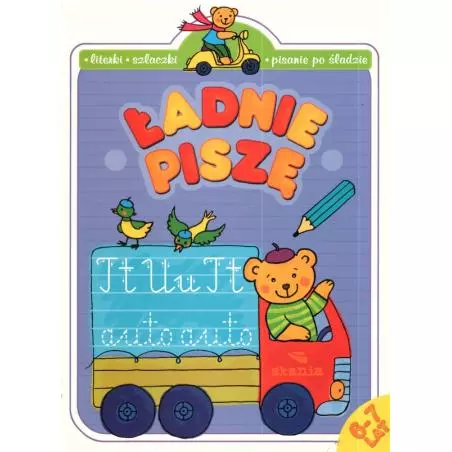 "Ładnie piszę" to dwie książeczki zawierające zestaw ćwiczeń w pisaniu liter. Część pierwsza jest przeznaczona dla dzieci w wieku 5-6 lat, część druga jest adresowana do 6-7 latków. Książeczki te sa zróżnicowane pod względem stopnia trudności. W części pierwszej dziecko znajdzie wzory literopodobne, szlaczki oraz zabawne ilustracje z wkompowanymi literami.