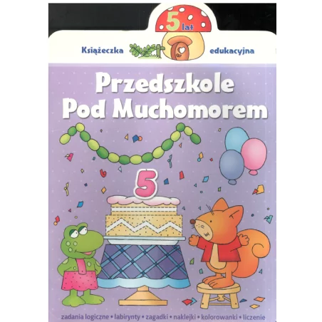 Seria „Przedszkole Pod Muchomorem" została przygotowana w oparciu o aktualny program wychowania przedszkolnego. Bohaterami serii są cztery zwierzątka: Żabka, Jeżyk, Wiewiórka i Borsuk - przyjaciele z leśnego przedszkola. Zwierzątka wspólnie uczą się w przedszkolu, a po zajęciach razem spędzają wolny czas. Dziecko - właściciel książeczki - pomaga zwierzątkom w rozwiązywaniu zadań, ucząc się tym samym wielu nowych rzeczy: opowiada historyjki obrazkowe, poznaje pojęcia dotyczące położenia przedmiotów w przestrzeni, uczy się logicznego myślenia, ćwiczy spostrzegawczość wzrokową, poznaje figury geometryczne, rozwiązuje zagadki, poszerza zasób swojego słownictwa oraz doskonali sprawność ręki. Staranne ilustracje oraz zestaw kolorowych naklejek dodatkowo dostarczą dziecku dużo radości.