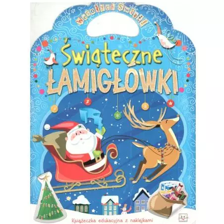 „Świąteczne łamigłówki” Co można znaleźć w tej książeczce? Labirynty, ukryte obrazki, zadania rozwijające spostrzegawczość z wyszukiwaniem szczegółów i dobieraniem elementów w pary – to dominujące typy zadań. Ich tematyka nawiązuje do zimy i świąt Bożego Narodzenia. Dodatkową atrakcją „Świątecznych łamigłówek” są liczne, lubiane przez dzieci naklejki. Książkę polecamy jako świąteczny upominek.