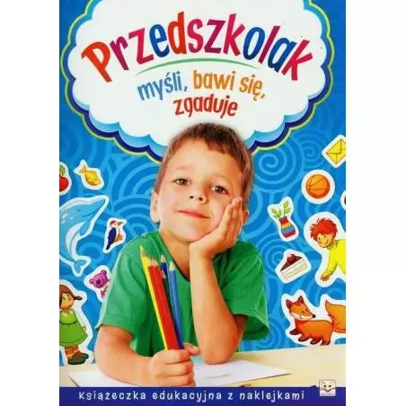 „Przedszkolak myśli, bawi się i zgaduje” to sposób na dobrą zabawę i sprawdzenie wiedzy dziecka. Staranne i czytelne rysunki oraz pełne humoru pomysły quizów sprawią, że dziecko z radością przystąpi do rozwiązywania zadań. Dodatkową atrakcją są dołączone do książki naklejki.