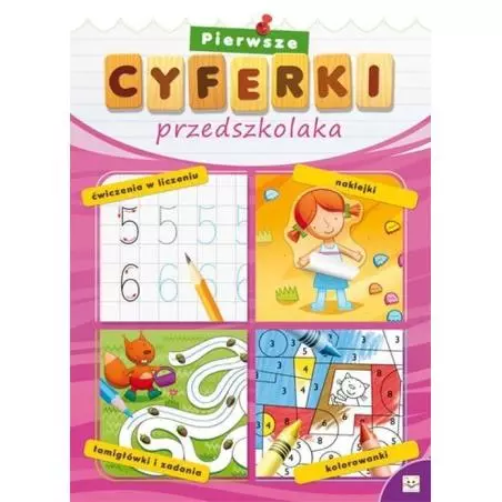 Książeczka edukacyjna „Pierwsze cyferki przedszkolaka” została opracowana z myślą o przedszkolakach rozpoczynających naukę liczenia. Jej zaletą jest przejrzysty układ oraz zabawowy, dostosowany do możliwości dziecka charakter ćwiczeń. Mali czytelnicy znajdą tu liczby od 1 do 20, szlaczki oraz wiele ciekawych łamigłówek. Dołączone do książek zestawy naklejek umilą i uatrakcyjnią dzieciom pierwsze próby liczenia. Książki polecamy wszystkim przedszkolakom.