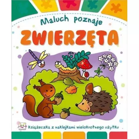 Książeczki na folii z naklejkami wielokrotnego użytku. Dziecko poznaje zwierzęta z różnych środowisk: zoo, łąka, las, wiejska zagroda, staw, przykleja naklejki i rozwiązuje zadania, np. wskazuje mamę i dziecko, łączy zwierzątko z jego domkiem oraz rysuje szlaczki po liniach przerywanych (nieudaną linię można zetrzeć i narysować jeszcze raz). Za poprawnie wykonane zadanie czeka nagroda w postaci naklejki z napisem "Brawo!"