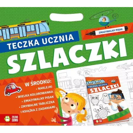Zdobądź swoją własną teczkę perfekcyjnego ucznia! Ćwicz pisanie i liczenie, rozwiązuj proste łamigłówki i rysuj szlaczki! W domu, w podróży, w szkole i gdzie tylko zapragniesz, rozwijaj swoje umiejętności i nie daj się wkraść nudzie! Podczas nauki wykorzystuj naklejki, zmywalne tabliczki do pisania oraz zmazywalny pisak. Czeka na Was również wielka kolorowanka!
