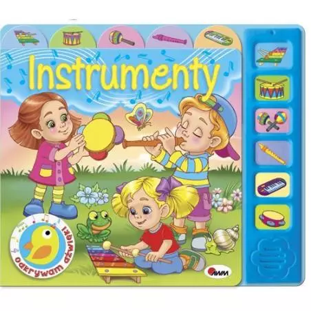 Książka „Instrumenty” zawiera krótkie historyjki o dzieciach, które potrafią grać na różnych instrumentach. Czy każdy maluszek wie, jak wygląda flet lub tamburyn? A czy każdy słyszał, jakie wydają dźwięki? Jeśli nie, zapraszamy do przeczytania historyjek i posłuchania dźwięków instrumentów. Przez naciśnięcie jednego z sześciu