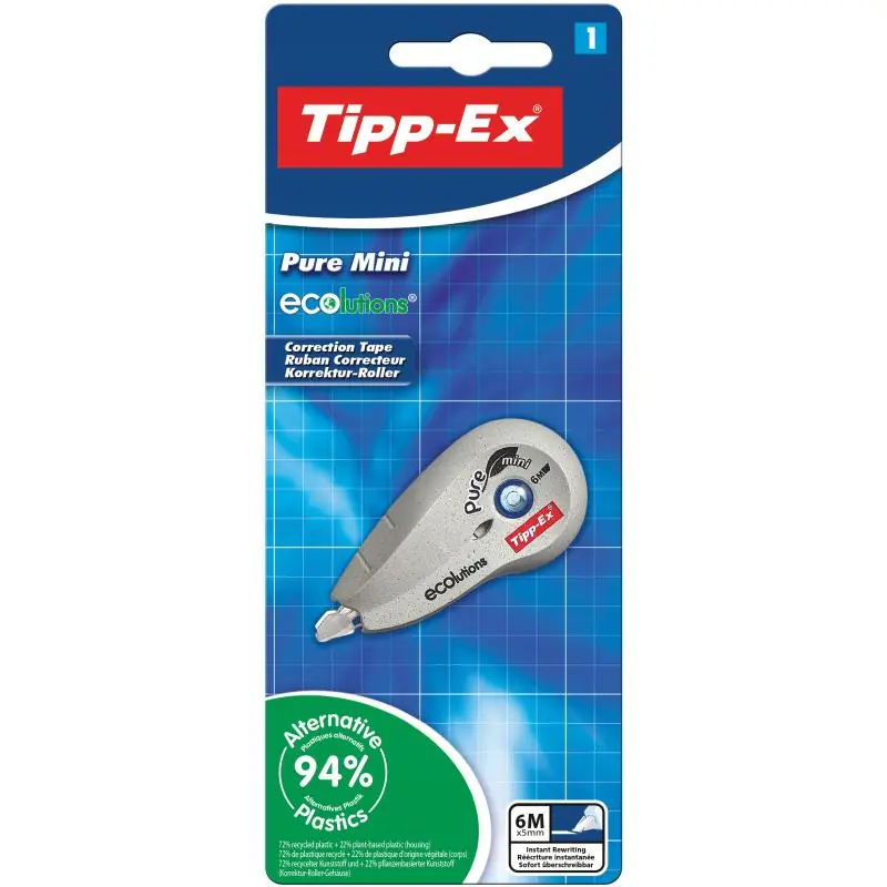 BIC Korektor TIPP-EX Pure Mini ECOlutions Tape 1 szt to niezawodny i ekologiczny korektor w taśmie, który łączy precyzję, wygodę i troskę o środowisko. Idealny do codziennych poprawek w biurze, szkole i domu, zapewnia szybkie i estetyczne korekty bez smug.