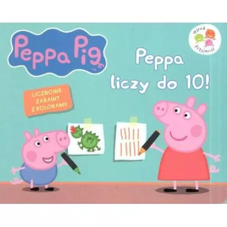 Świnka Peppa poznaje świat liczb i kolorów.Dzięki książeczce dziecko ma możliwość połączenia nauki liczenia i rozpoznawaniem kolorów.