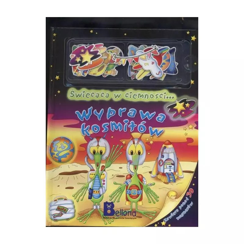 Zii i Zeb to dwójka kosmitów, którzy wybrali się na Ziemię. Przyłącz się do nich i uzupełnij magnesami każdy obrazek. Do wyboru masz ponad 30 świecących w ciemności magnesów, więc baw się nimi i układaj różne obrazki. Magnesy same trzymają się stron i magicznie świecą w ciemności.
