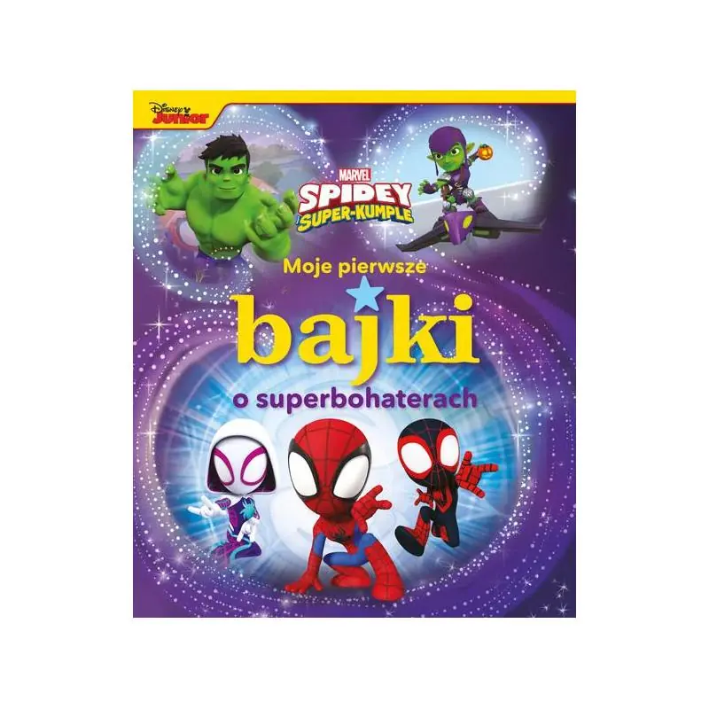 Troje małych superbohaterów – Spidey, Ghosty i Spin – każdego dnia opiekują się mieszkańcami Nowego Jorku i dbają, by nie stało się im nic złego. Poznaj ich przygody i tajne misje, które wydarzają się w najmniej oczekiwanych miejscach: w parku, na placu zabaw, w drodze do kina, na złomowisku, a nawet w muzeum Przed wami sześć bajek na dobranoc, które zostały opowiedziane w prosty i przystępny sposób, w sam raz dla małego czytelnika. „Moje pierwsze bajki” to bestsellerowa seria, którą pokochało kilkaset tysięcy osób. Spis treści: - Atak zielonych chichotów - Małpie figle - Zagubione, znalezione - Pajęcza niespodzianka - Złoczyńca na złomowisku - Dinozaury