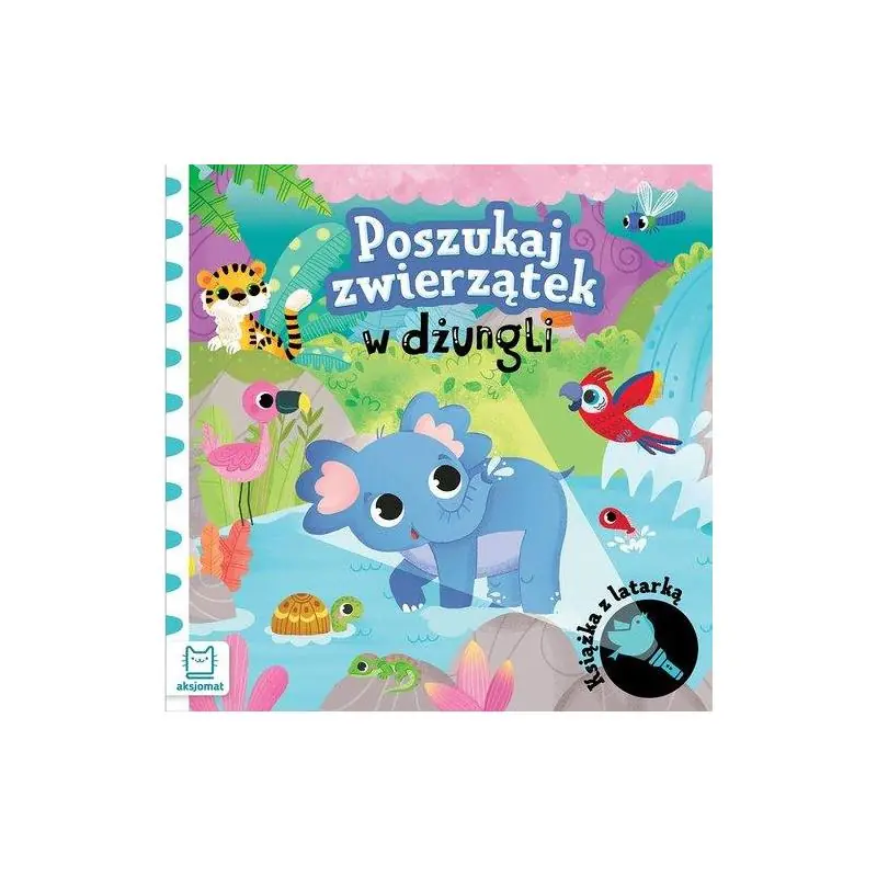 Witamy w dżungli! Kartonowa książeczka o zwierzętach z wesołymi wierszykami to zawsze strzał w dziesiątkę. Małe dzieci uwielbiają takie książeczki, a nasza propozycja ma dodatkową niespodziankę – do książki dołączona jest papierowa „latarka” – wystarczy tylko włożyć latarkę pomiędzy stronę a pokrywającą ją czarną folię, a ukryte na rysunku zwierzątka staną się widoczne. Zabawa w poszukiwanie zwierząt na kartach książki z pewnością spodoba się dziecku. Papierowa latarka przyczepiona jest do wstążeczki, dzięki czemu się nie zgubi. Po zabawie należy schować ją do wycięcia w książeczce. Z tą książką dziecko bawi się w detektywa, szuka zwierzątek, poznaje ich nazwy oraz wzbogaca pamięć i słownictwo po wysłuchaniu wierszyków. Kartonowa książeczka z latarką to doskonała zabawa dla małych dzieci i źródło wiedzy o zwierzętach.