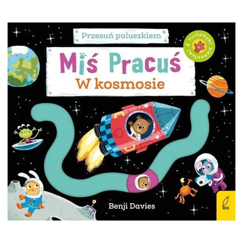 Co robi Miś Pracuś? Dziś leci w kosmos! Pomóż mu ukończyć misję, przesuwając paluszkiem ruchome elementy. Trzeba dotrzeć do rakiety, wystrzelić ją w niebo i wylądować na księżycu. To książka dla pracowitych i ciekawych świata maluchów! Seria "Przesuń paluszkiem" to książki, które w wyjątkowy sposób angażują najmłodsze dzieci w