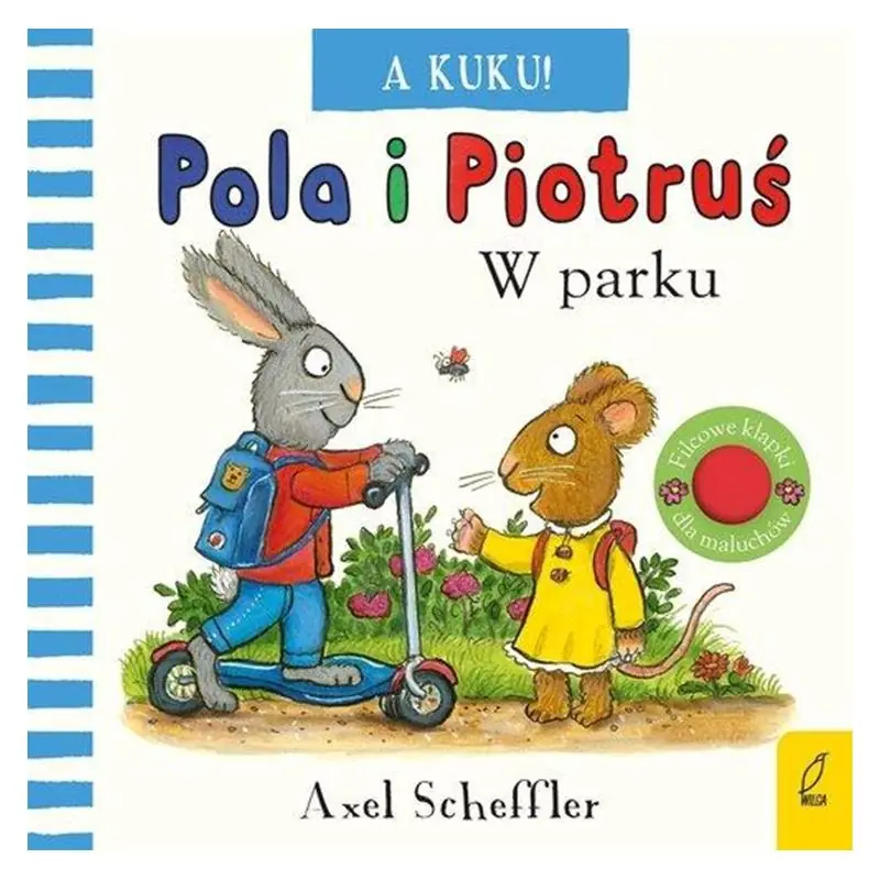 Nowa odsłona znanej i lubianej serii książeczek o sympatycznych Poli i Piotrusiu. Tym razem przyjaciele bawią się w chowanego. Pola próbuje znaleźć Piotrusia. Kolorowe filcowe klapki i fantastyczne ilustracje zachęcą maluchy do przyłączenia się do zabawy i odkryciu, gdzie schował się Piotruś. Powtarzanie za rodzicem wyrazów dźwiękonaśladowczych to zarówno wspaniała zabawa, jak i trening mowy.