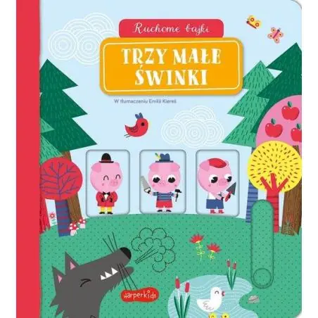 Ruchome bajki to nowa seria książeczek w ofercie HarperKids przeznaczona dla najmłodszych czytelników. Znane wszystkim postacie z bajek w przekładzie Emilii Kiereś zapraszają do magicznego świata, ruchome elementy na każdej stronie sprawią, że jeszcze łatwiej mały czytelnik wyobrazi sobie bohaterów. W serii ruchomych bajek zostały wydane Trzy małe świnki. Opowieść o świnkach, które postanowiły wyprowadzić się od swojej mamy i zbudować swoje domki. Każdy domek zbudowany był z innych elementów: słomy, drewna i cegły. Postępy budowy obserwował wilk, który chciał włamać się do domków. Pierwszy domek ze słomy zdmuchną, drugi domek się zawalił. Dopiero domek z cegieł dał świnkom bezpieczne schronienie przed wilkiem. Ruchome bajki to książeczki dla dzieci i rodziców do wspólnego oglądania i czytania. Ruchome elementy, doskonale wspierają rozwój maluchów i rozwijają sprawność manualną. Piękne kolorowe ilustracje sprawiają, że dzieci z przyjemnością odkrywają świat wokół siebie oraz ćwiczą skupianie się przy dłuższym tekście.